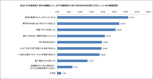 4、冷凍食品に求める価値として、以下の選択肢より当てはまるものをお答えください。(n=1,062、複数回答)