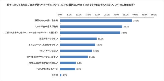 5、 餃子に対して持つイメージについて、以下の選択肢より当てはまるものをお選びください。(n=1,062、複数回答)