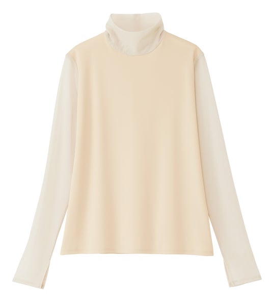 首元と袖に透け感のあるストレッチチュールを使用した涼やかなハイネック。