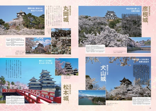 松江城(島根・松江市)、彦根城(滋賀・彦根市)、犬山城(愛知・犬山市)、丸岡城(福井・坂井市)、松本城(長野・松本市)、駿府城(静岡・静岡市)、篠山城(兵庫・丹波篠山市)、宇和島城(愛媛・宇和島市)、萩城(山口・萩市)、米子城(鳥取・米子市)、盛岡城(岩手・盛岡市)