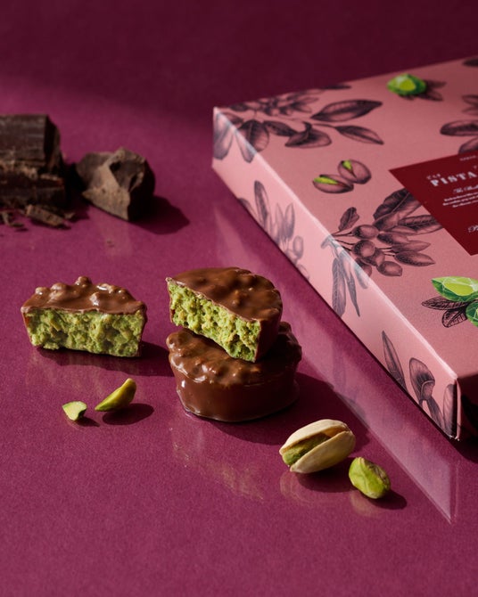 カリッと香ばしくローストしたピスタチオを、ピスタチオチョコレートで包み込んだ、美しい宝石のようなピスタチオショコラです。ピスタチオそのものの、濃厚で香り高い美しさを1粒に閉じ込めました。