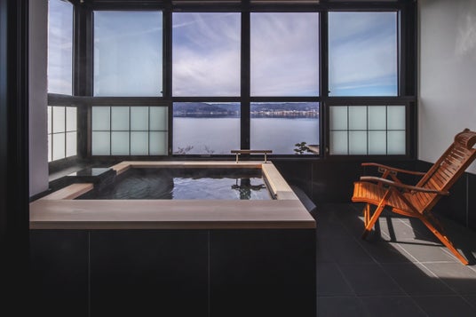 諏訪湖と湯船のインフィニティな景色が広がる、混浴展望露天風呂「綿雫」