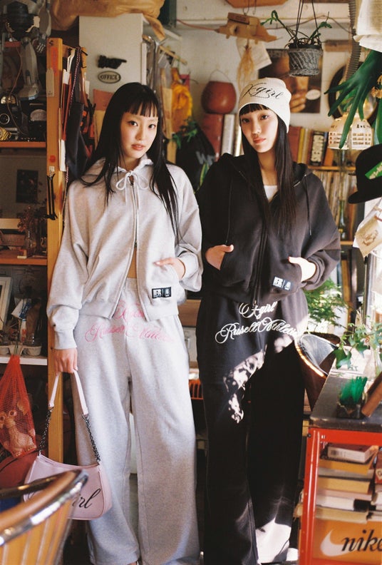 今回のコレクションは、X-girlとRUSSELL ATHLETIC、両ブランドのロゴグラフィックを刺繍で施したキャッチーなデザイン。昨シーズンに引き続き、エクスクルーシブなコラボレーションネームを配置しました。