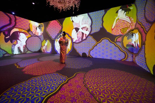 葛飾北斎、歌川国芳、歌川広重、喜多川歌麿、東洲斎写楽、歌川国貞など世界的な浮世絵師の作品300点以上をもとに、3DCGアニメーションやプロジェクションマッピングを駆使して大人から子どもまで楽しめるグラフィカルなデジタルアート作品として描き、複数の立体映像空間で浮世絵の世界に没入できるイマーシブ体感型デジタルアートミュージアムです。デジタル展示に加え、江戸時代に刷られた著名な浮世絵や復刻版の浮世絵も展示し、浮世絵の歴史や江戸の文化、浮世絵師たちについて解説します。