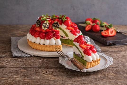 ラ・メゾン・アンソレイユターブル・パティスリー/あまおうと辻利兵衛本店抹茶のタルト 1ピース1,380円 辻利兵衛本店宇治抹茶を使用したケークタルトに、甘酸っぱいあまおうを飾りました。 【販売期間:1月31日(土)まで】
