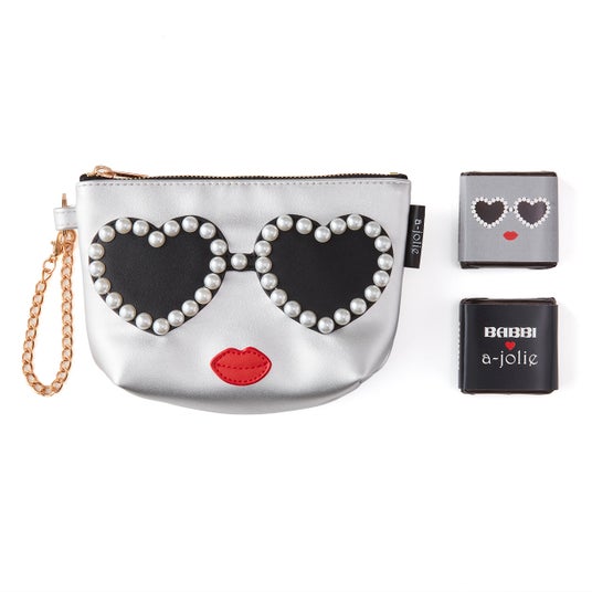 毎年バレンタインシーズンに様々なブランドとのコラボレーションを展開しているBABBIの2026年コラボ商品は、人気ブランド「a-jolie(アジョリー)」です。過去に実施したコラボ商品は大変ご好評をいただき、今回は待望の第2弾として登場します。限定デザインのポーチは、「a-jolie」定番の“パールサングラス”をモチーフにした遊び心あるデザインで、BABBIのチョコレートウエハース 「ヴィエネッズィ」のバニラとピスタチオ味を詰め合わせた特別なアイテムです。また、サテン素材で仕立てた大きめマチが特徴の「a-jolie」オリジナルデザインの保冷バッグも、限定販売いたします。