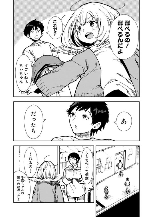 数万人に一人の確率で羽が生えてくる"ハネビト"が活躍する世界。田舎に引っ越してきた変わり者の女の子・ちぃは幼馴染のせんちゃんの案内のもと山道を歩いていると、ある事件が起き、ちぃの背中から突如小さな羽が生えてきたのだった…!?