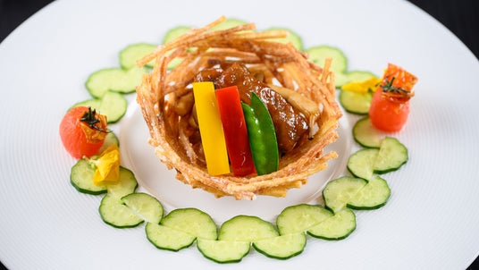 プリンスホテルの中国料理調理人として36年間にわたり培ってきた中国料理の伝統を継承し、これまでの経験と技を礎に、北海道食材の魅力を最大限に引き出した料理の数々をご用意いたしました。前菜として「ズワイ蟹のタマゴ捲き山椒ソース乗せ」から始まり、「中国式北海道産鮮魚のお造りサラダ仕立て」や「上海蟹のみそ入りフカヒレスープ」。さらに調理長土居裕司が自らお客さまの席にお伺いし、目の前でご提供させていただく「北京ダック」など、歴代の味を受け継ぎつつ、北の恵みと共に仕上げた全9品の中国料理フルコースを心ゆくまでご堪能いただけます。