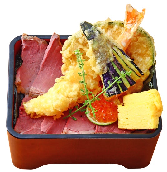 レア天丼銀座三よし黒毛和牛のローストビーフ天重