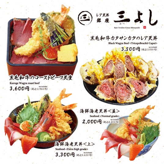 レア天丼銀座三よし黒毛和牛カタサンカクのレア天丼