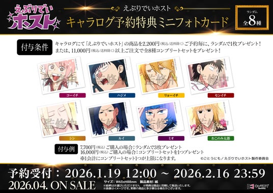 株式会社ディ・テクノ(本社:東京都港区 代表取締役社長:市原 高明)は、2026年1月19日(月)12:00より、TVアニメ『えぶりでいホスト』オリジナルグッズの予約受付を開始いたしました。