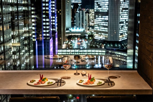 本館最上階に位置する当レストランは、煌びやかなワインセラーの廊下を抜けると、一面の大きな窓の向こうに都庁をはじめとする西新宿の夜景が広がり、五感で愉しむ特別なひとときをお過ごしいただけます。夜景を一望できる窓側カウンター席や、グループでゆったりとお寛ぎいただけるテーブル席もご用意しております。