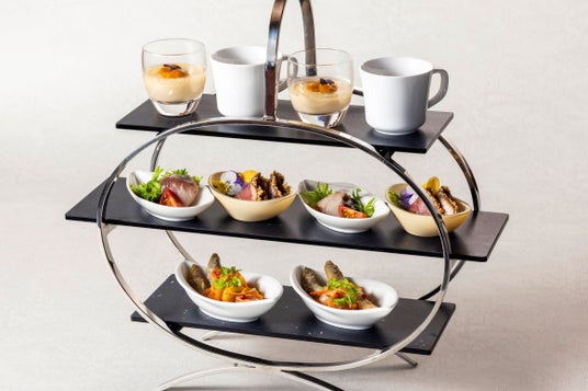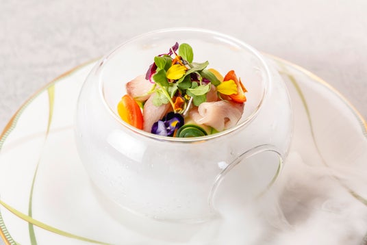 このたびの営業スタートに合わせて、日本の伝統的な食材と四季折々の素材を取り入れた“モダンキュイジーヌ”メニューを3コースご用意いたしました。おすすめのコース「Starry ~スターリー~」では、シェアスタイルの華やかなオードブルスタンドから始まり、鰹出汁を効かせたソースとともに味わうオーストラリア産鮑と真鯛、深みのある金山寺味噌が引き立てる黒毛和牛ステーキなどをお愉しみいただけます。また、ソムリエが厳選した数々のドリンクをご用意しております。お客さまのシチュエーションや気分に合わせてご提供する一杯をお料理とともにご堪能ください。