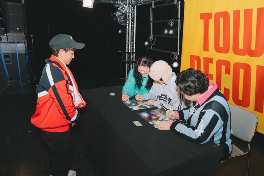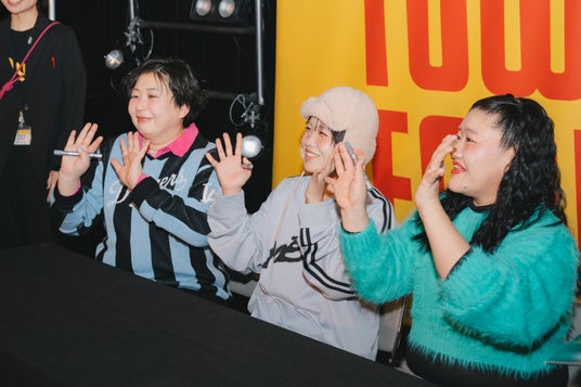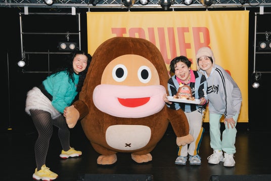 森三中・大島、ガンバレルーヤ(よしこ・まひる)からなる音楽ユニット MyM(マイムー) が、タワーレコード渋谷店にて『WARAOZE』アナログ盤発売記念サイン会を開催した。