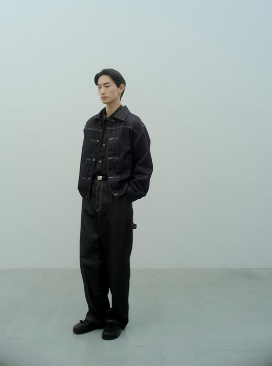 再生ポリエステルを使用し、環境に配慮したものづくりで、次世代のデニム素材を開発しました。デニムらしい強度とインディゴ染めのような色でありながら、糸の芯まで染めることができる染色方法で色落ちがしにくいようにしています。紳士は軽めのウォッシュ加工でデニムらしい表情を再現し、婦人はノンウォッシュで綺麗なツイルラインを残しました。