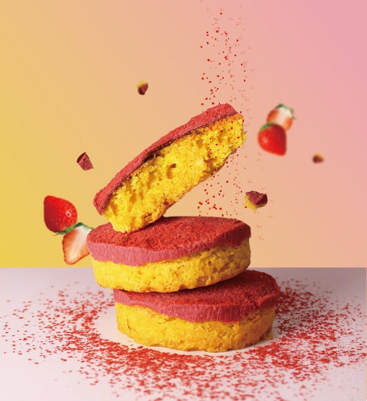 あまおう苺を使ったピンク色の可愛らしいサブレ生地で、さつまいもの焼きチョコをサンドしました。サクッと香ばしい食感と、甘酸っぱいあまおう苺、ほっこりやさしいさつまいもの甘さが調和し、ひと口で季節の恵みを感じられる贅沢な味わいです。