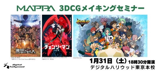 IT関連及びデジタルコンテンツの人材育成スクール[デジタルハリウッド] (運営会社:デジタルハリウッド株式会社、本社/本校:東京都千代田区、代表取締役社長兼CEO:藤井雅徳、学長:杉山知之)では、株式会社MAPPAの池田昴氏、金渡勲氏をゲストに迎え、3DCGメイキングセミナーを2026年1月31日(土)に開催いたします。