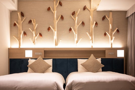 チョコレートは、カカオポッドと呼ばれる果実の中で育つカカオ豆が主な原材料のひとつです。カカオ豆の製造過程では通常、豆 が取り出された後のカカオポッドは廃棄されますが、株式会社ロッテのカカオビジネス開発部は、カカオポッドの新しい可能性に着目。カカオポッドを「ドライカカオポッド」に加工し、新たな価値の創出を目指す「カカオポッド コネクトプログラム」を始動させました。今回のCacao Roomでは、『植物と暮らす』をコンセプトに掲げる園芸店・株式会社ガレージが客室装飾プロデュースを担当。ドライカカオポッドを魅力的なインテリアに生まれ変わらせました。ベッドボード上のドライカカオポッド装飾が、デラックスルームにアートの装いを纏わせたほか、「カカオポッドランプ」が光と影のハーモニーで客室をやさしく照らします。