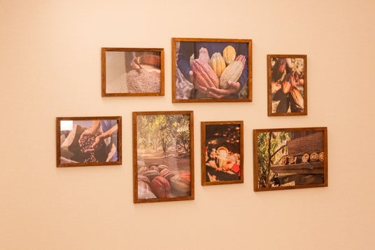 カカオ農園の写真を飾るアートギャラリー。カカオポッドが辿ってきたストーリーを感じられる