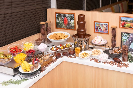 客室にご用意した選りすぐりのカカオを使用した高カカオチョコレートは、カカオのコクを味わうのにぴったりです。また、ホテルの朝食ビュッフェでは、健康と美を意識した和洋メニューに加え、ロッテならではの「カカオチキンカレー」「ガーナチョコレートファウンテン」「カカオワッフル」「ホテルオリジナルチョコレートドリンク」などもご用意しています。ぜひお召めしあがりください。