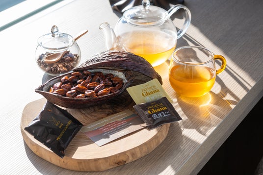 特製ドライカカオポッドケースとウェルカムカカオスイーツ、カカオティー