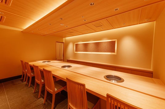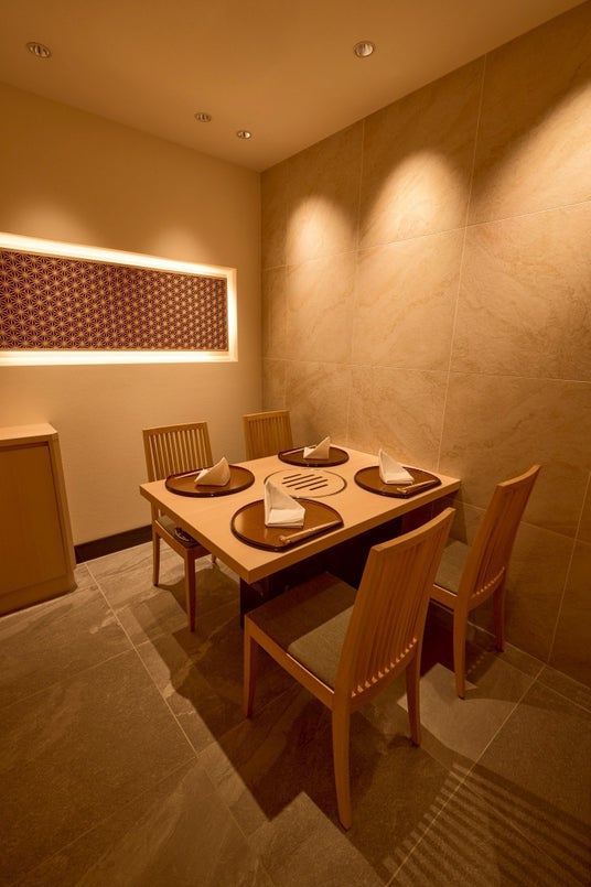 3. 「全席完全個室」と「焼師」によるフルアテンドサービス 大切な記念日や会食、接待にも最適な「全席完全個室」の空間。当グループの誇りである『焼師』が、一枚一枚最高の状態で焼き上げるフルアテンドサービスにより、お客様を最高の状態で厳撰和牛の世界へ誘います。