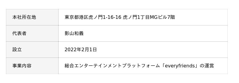 エブリライブ株式会社 会社概要