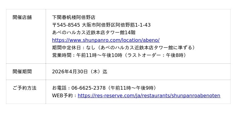 2.「下関春帆楼阿倍野店」概要