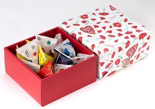 人気のかりんといろは8種24個入を母の日包装でご用意。個包装になっているので、小腹が空いた時にもお酒のお供にもぴったりです。