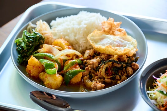プレートランチ(写真はガパオと白身魚のチリソース炒め)