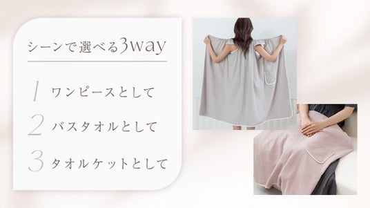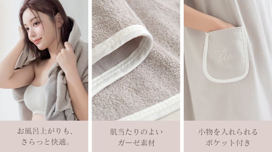 【お風呂上がりもさらっと快適】忙しいママの見方!濡れた体にさっと羽織れる「3wayラップタオルワンピース」が新登場。