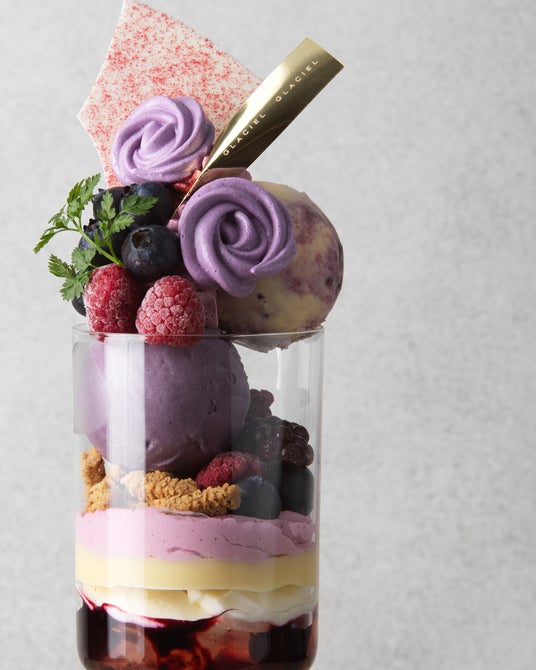 ブルーベリーをふんだんに使用した、夏にぴったりの爽やかなパフェ。