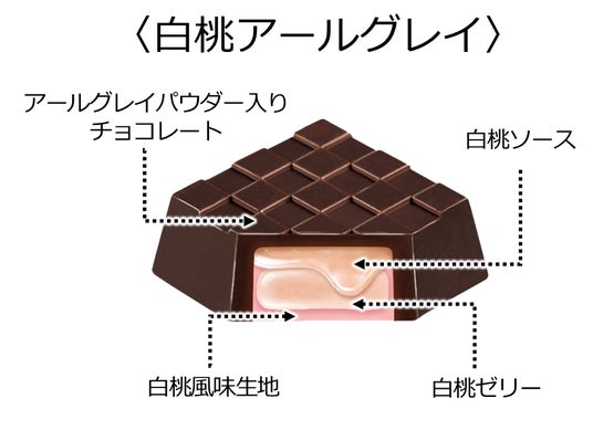 白桃の瑞々しい甘味とアールグレイの華やかな香りを1粒に凝縮。疲れた日のご褒美や