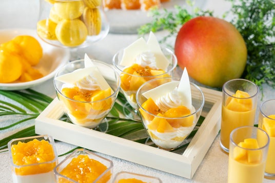 マンゴーは、モンブランやシャーベットなど全9種類のマンゴースイーツをご用意しており、濃厚な味わいの宮崎産マンゴーを使用したパフェ(1名さま1個限定)はおすすめの1品です。