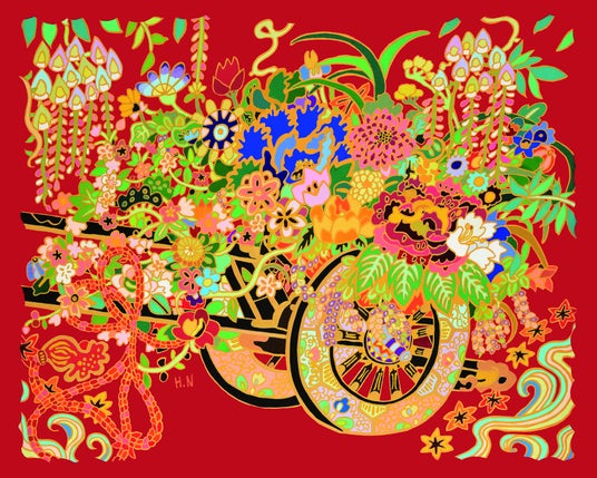 仲村春花は、2018年にパソナハートフルに入社以来、アーティスト社員として活躍。華やかな色遣いが特徴的な「花車」のような作品から、コミカルでカラフルな絵が特徴の「こいのぼり2」など幅広い作品を創り上げます。