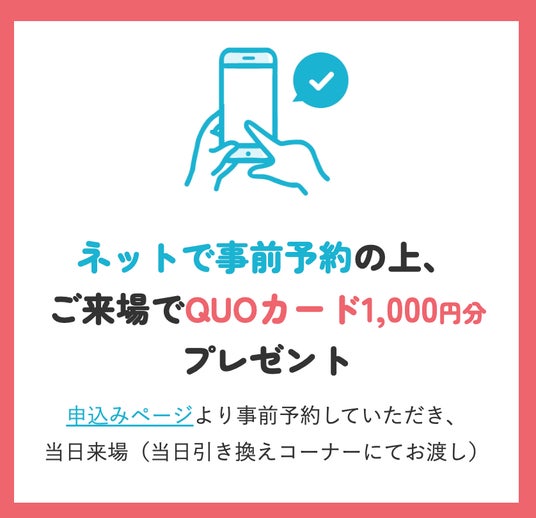 ネットで事前予約の上、ご来場でQUOカード1,000円分プレゼント!