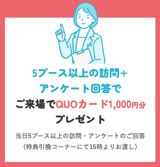 5ブース以上の訪問+アンケート回答でQUOカード1,000円プレゼント!