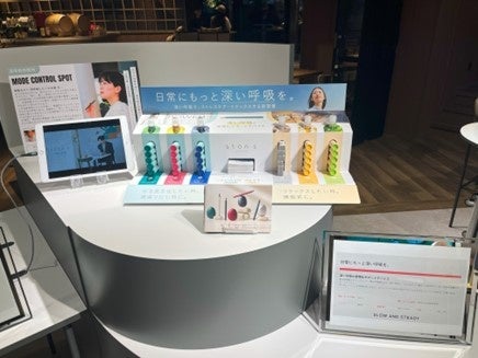 BREATHERは、深呼吸を通じた休み方改革やパフォーマンスアップをテーマに、様々な企業とのコラボレーションを積極的に行っています。今回新たな取組みとして、「好奇心をきっかけに健康を意識できる場所」をコンセプトに、株式会社スマートバリューが運営するオフィスワーカーや企業、ヘルスケア事業者の未来の健康づくりを体験できる場所『SLOW AND STEADY』内で、深呼吸サポートデバイスston s(ストンエス)を出展いたします。