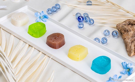 しろくま、ぺんぎん?、とんかつ、ねこ、とかげの形を模った「すみっコゼリー」は、すっきりとしたレモンの風味を感じるゼリーです。