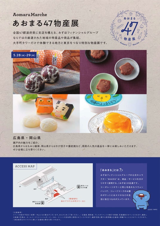 東京建物と〈みずほ〉で取り組む地域創生 「あおまる47物産展」東京・大手町タワーで開催 2025年5月は広島県・岡山県の名産品が集結