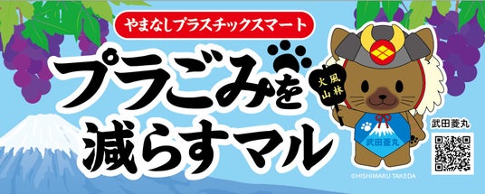 デザイン:富士の国やまなし観光キャラバン隊長「武田菱丸」を配し、「プラごみ削減」の普及啓発活動を行います。