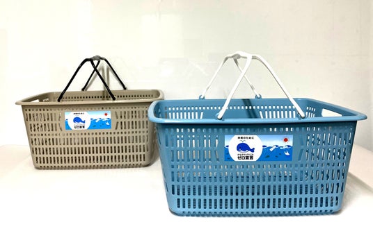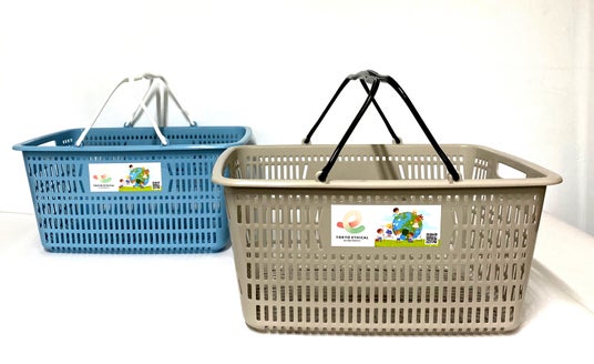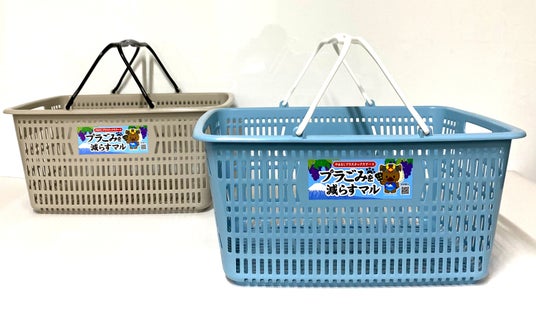 2025年度は「ナチュラルな色がほしい」とのお客さまの声にお応えし、バスケットのカラーを刷新しました。グレー・ブルーの2種類※1のマイバスケットで、「プラスチックごみ削減」活動を提案します。