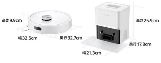 掃除機本体のサイズは幅32.5×奥行32.7×高さ9.9cmと「Q7 Max+」と比較して直径約2.6cmコンパクトに。自動ゴミ収集ドックのサイズは、幅21.3×奥行17.8×高さ25.9cmと「Q7 Max+」と比較して幅9.2cm、奥行き26.2cm、高さ16.5cmもコンパクトになりました。どんな部屋にもフィットし、置き場所にも困りません。