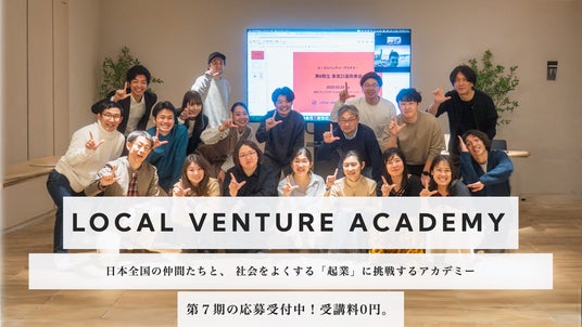 株式会社ローカルベンチャーグループ(本社:福岡県福岡市、代表取締役:富田安則)は、ゼロからの起業はもちろんのこと、会社員を続けながらの副業起業やフリーランスからの法人化など、起業を目指す全ての方を対象とした「ローカルベンチャーアカデミー」の第7期生の募集を開始いたしました。当アカデミーは起業数の最大化を通じた地域経済へのインパクト創出を目指し、「受講料は無料」。4ヶ月間の集中プログラムを通じ、創業融資を得て事業推進できるレベルの事業計画策定を行います。累計約200名がこのプログラムを修了し、多くの事業・企業が誕生し、様々な地域でビジネスAward等を受賞しています。