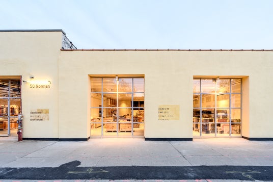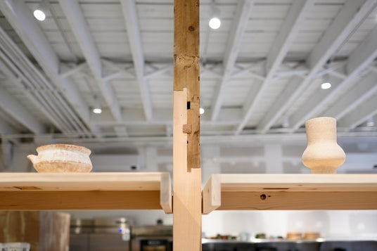 ストアデザインは既存スペースと同じくスキーマ建築計画が担当。50 Normanでは海外の施工現場においても日本国内で作るような繊細で質の高いデザインを再現することを目指し、日本で解体された古材や廃材を柱や什器の部材として再利用するほか、可能な限り日本で部材を加工し、体積を減らしてから海外へ輸送することで、日本から現地へ派遣した職人が短期間に組み立て・加工するというプロセスを採用しています。