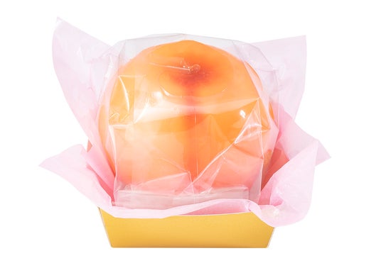 外側は、カスタードにバターを加えた自家製のピーチバタークリーム。バタースイーツ専門店ならではのクリーミーでなめらかな口どけです。中にはとろとろの国産桃果肉のコンポートがぎっしり。さらにピーチコンフィチュールがあわさって、桃の味わいがお口の中でじゅわりと広がります。仕上げにつやつやぷるんっなピーチジュレをまとわせたら、夏にぴったりの“まるでピーチ”なケーキが出来上がり!桃感溢れるジューシーな味わいをお楽しみください。