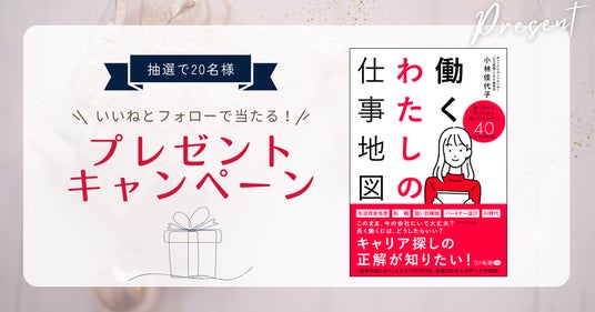 株式会社キャリアデザインセンター(本社:東京都港区、代表取締役社長兼会長:多田 弘實)が運営する、働く女性のためのWebマガジン『Woman type』は、正社員で長く働きたい女性のための転職サイト『女の転職type』の20周年と、初の書籍『働くわたしの仕事地図』(2025年5月14日出版)の刊行を記念し、本書をWoman type読者20名様にプレゼントする企画を開始いたしました。