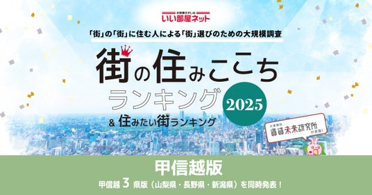 ※新聞・雑誌、テレビ・ラジオ等の報道関係者におかれましては、本リリースを掲載・報道または引用する場合には、「いい部屋ネット 街の住みここち&住みたい街ランキング2025<山梨県版>」と出所の表記をお願いします。