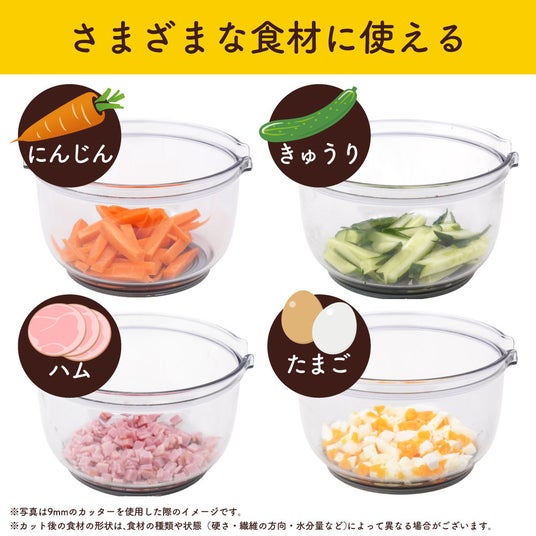 刃を替えればカットの太さや形も自由自在で、さまざまな料理に活用できます。