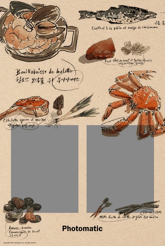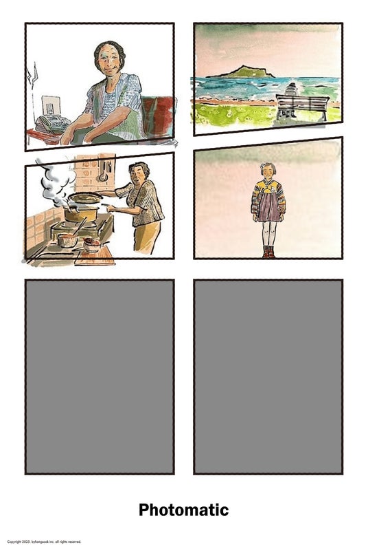 カンスク氏は大ヒット韓国ドラマ「愛の不時着」をはじめ、「ウ・ヨンウ弁護士は天才肌」や「マイディアミスター~私のおじさん」など300を超えるドラマや映画の絵コンテを担当してきた人気コンテ作家です。Photomatic Japanとのコラボレーションにあたって、カンスク氏が表現するみずみずしい食材や、韓国の温かな暮らしの様子など、同氏ならではの世界観を感じられる描き下ろしのオリジナルフレーム全8種を制作いただきました。